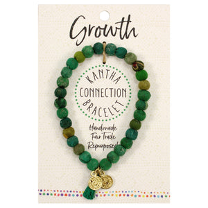 This green repurposed textile bracelet challenges us to aspire to greater levels of fairness and sustainability. This Growth Bracelet reminds us that artisans flourish under nurturing conditions.