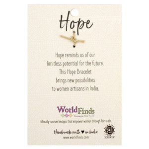 This Hope repurposed textile bracelet is a reminder of our limitless potential for the future. This Hope Bracelet brings new possibilities to women artisans in India.