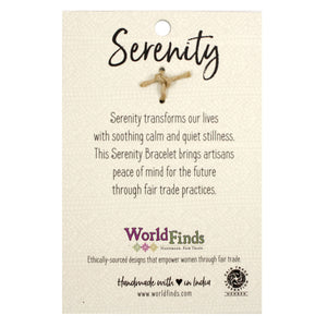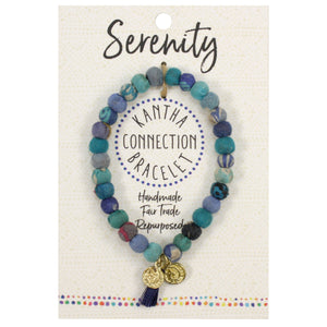 This blue repurposed textile bracelet is a reminder of the transformation that comes with soothing calm and quiet stillness. This Serenity Bracelet brings artisans peace of mind for the future through fair trade.
