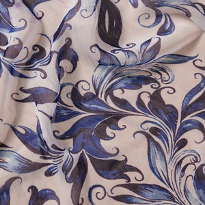 Materials: 100% Polyester Crinkle Chiffon with Screen Print - Measures: 71"L x 19.75"W - Colors: Blue, White - Care: Hand wash. Do not Bleach. Cool Iron. Do Not Tumble Dry. - Handcrafted in India