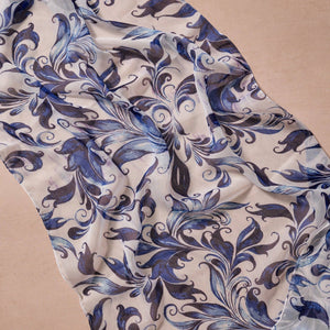 This lightweight scarf features a timeless blue paisley print on a crisp white backdrop. Crafted from soft crinkle chiffon, its airy texture drapes beautifully, adding a touch of elegance to any outfit. Perfect for year-round wear. A Ten Thousand Villages Exclusive handcrafted by the artisans of Asha Handicrafts, a social enterprise organization that provides support to more than 800 Indian makers and their families through a sustainable global market, helping them preserve the art and craft of India.