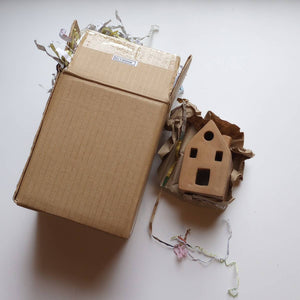 Cozy up your home with the Matira Bari Terracotta Incense Holder. This incense holder, shaped like a house, holds incense cones and funnels the smoke through a chimney for a unique and relaxing experience. Perfect for adorning your mantle or side table, it's sure to make you smile with its charming design. Handcrafted by Prokritee in Bangladesh, an organization run by women for women. Prokritee provides sustainable and safe employment to women in rural areas of Bangladesh.  Materials: Terracotta - Measures: 4.5"H - Colors: Brown - Handcrafted in Bangladesh
