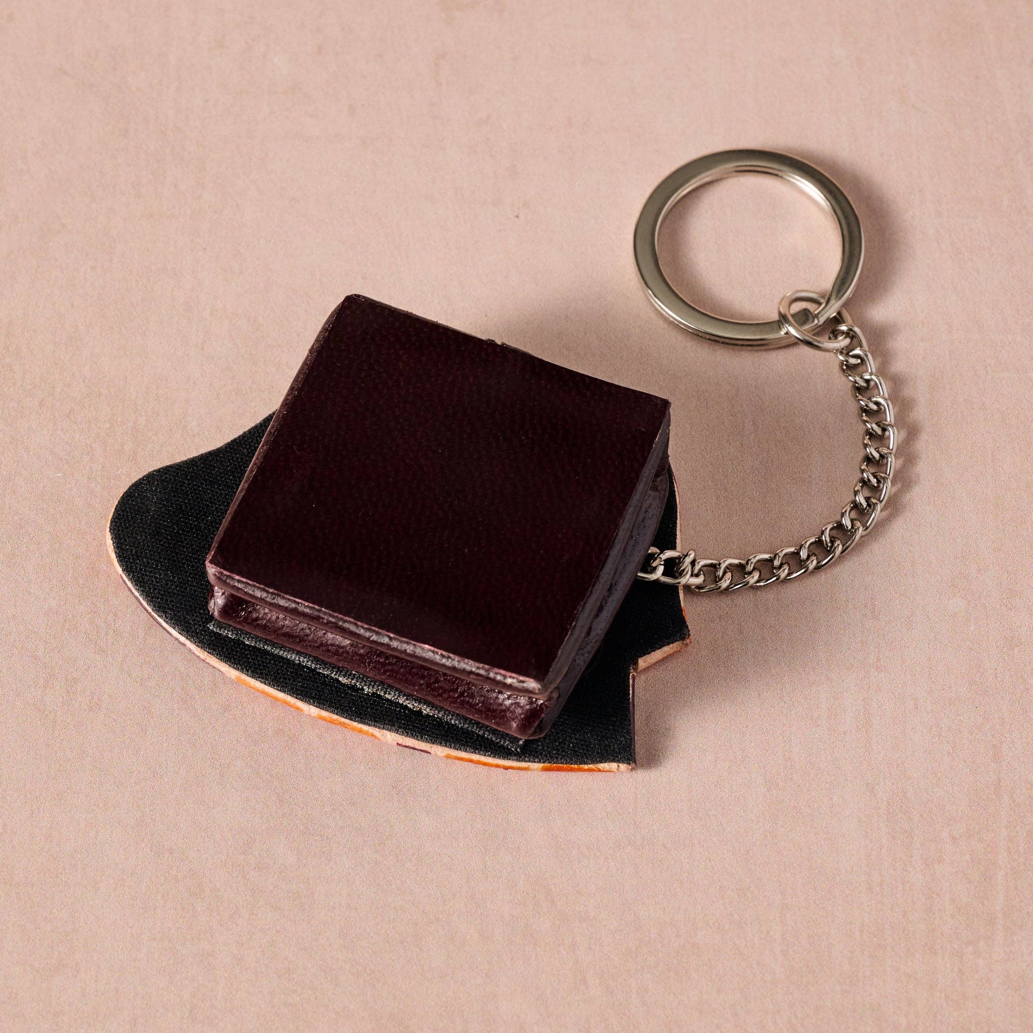 Carry a little charm wherever you go with this adorable turtle key ring and hidden coin purse. Made from dark brown and orange goat leather - a biproduct of the meat industry that might otherwise go to waste - the smiling turtle features a hexagon-patterned shell, cheerful stitched details and sweet orange feet. Cleverly disguised, a secure snap-open wallet is tucked into the back, perfect for change or tiny treasures. Complete with a 3.5" chain, it's a delightful blend of function and fun. Handcrafted in India by the artisans of Craft Resource Center Pvt. Ltd. (CRC), a guaranteed Fair Trade Organization creating sustainable income opportunities for marginalized communities by blending traditional skills and ethical practices with globally competitive design, quality and innovation while preserving the dignity of labor and empowering artisans through fair trade, technology and skill development.