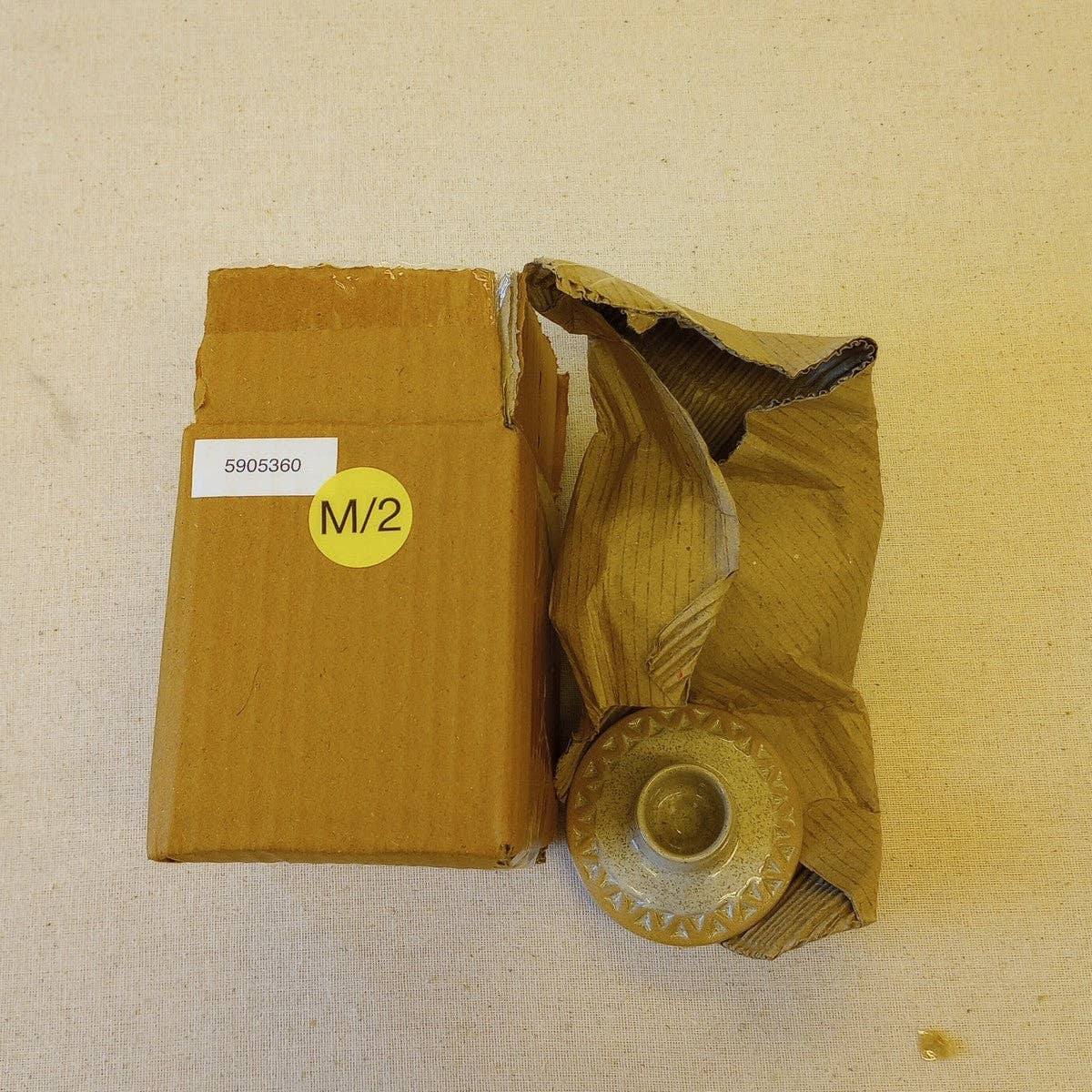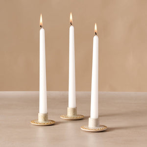 Enhance your home decor with this handsome ceramic accessory! Featuring decorative triangular etching around the base, this taper candle holder features a versatile brown flecked on cream color scheme. Light up your space and create tasteful ambiance with this Ten Thousand Villages Exclusive piece handcrafted in Nepal.