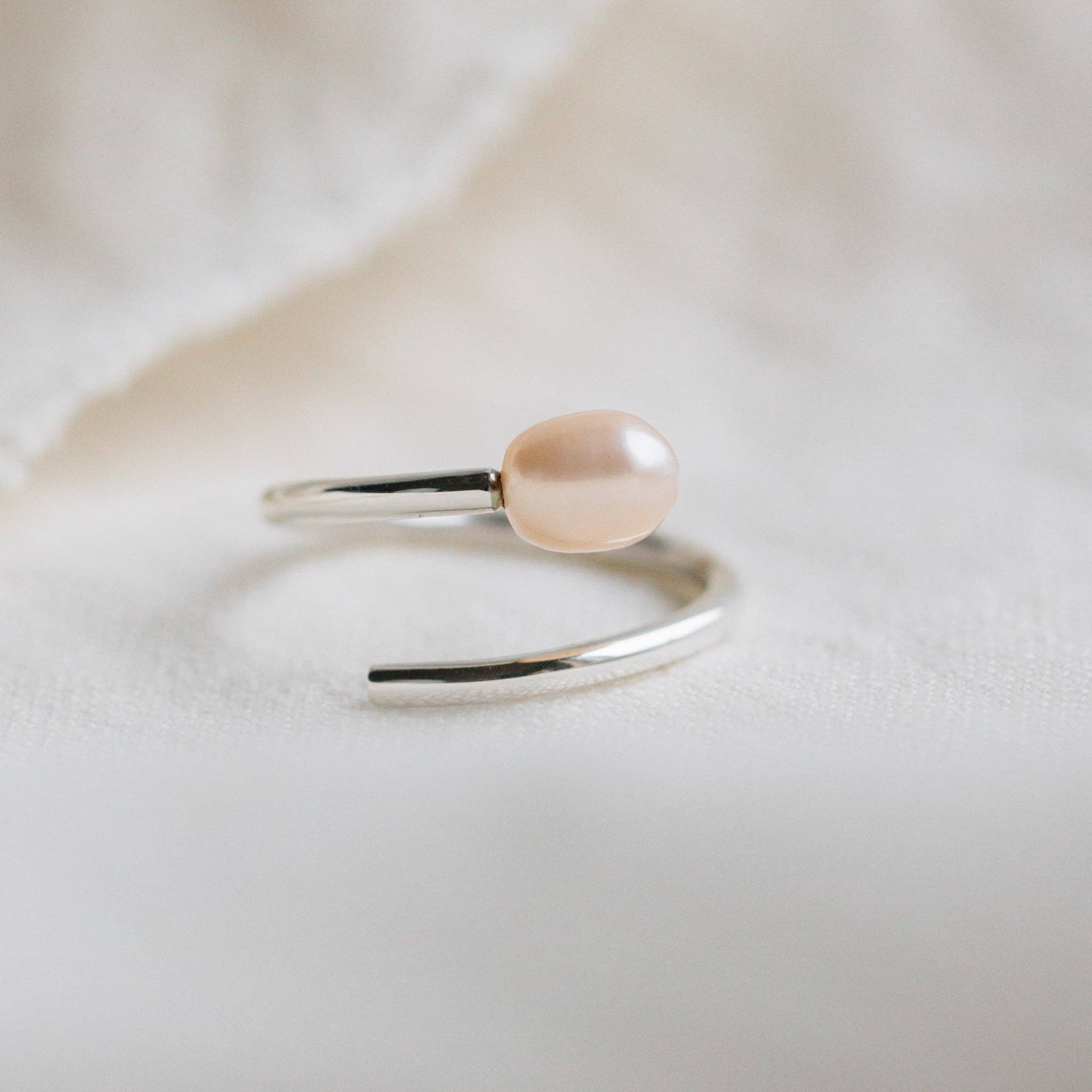 The Ati Pearl Swirl Silver Ring is everything you've been looking for. This stunning open ring is handcrafted by skilled artisans with sterling silver and a lustrous pearl. Each purchase supports local family businesses and artisan groups through Allpa in Peru, providing training and resources for their craft. Create a unique look and make a positive impact with this beautiful piece.