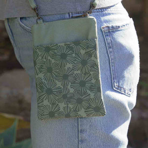 Grab it and go! Our mini phone crossbody is an instant fave. Flaunt your fair trade style and keep your phone close for easy access. The unique, screen printed design is fun and fashionable, and multiple credit card slots will keep you organized.