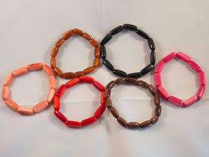Arroz means rice. Rice shaped tagua beads on elastic. Ultimately stackable! Beads approx. 0.25”-0.5”wide. Available in a variety of colors. Made in Ecuador.